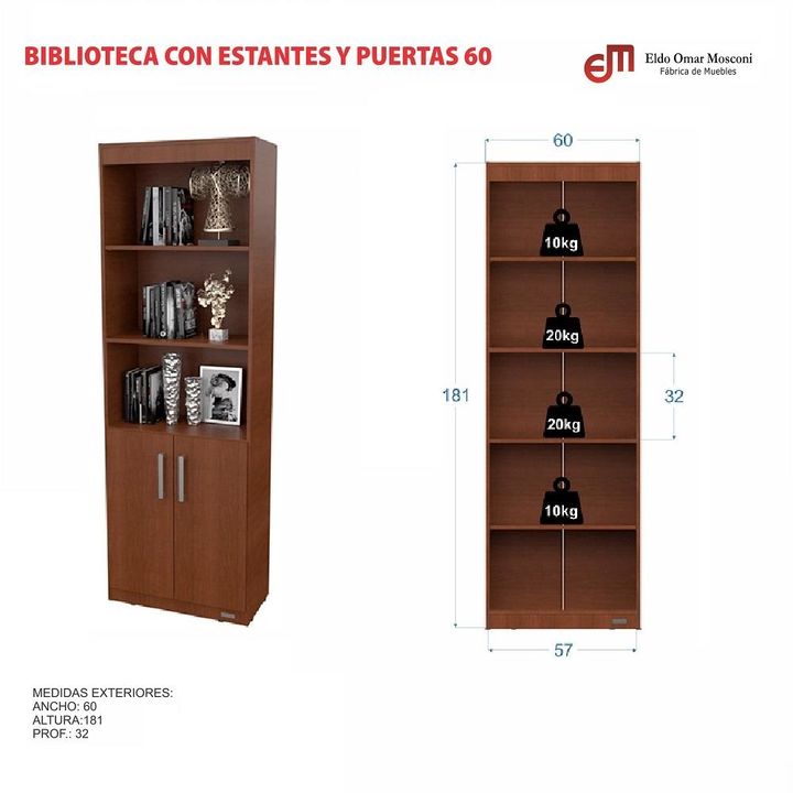 BIBLIOTECA CON ESTANTES Y PUERTAS MOSCONI MELAMINA 81051 COLOR WENGUE ** EL PRODUCTO SE ENTREGARA EN AMBA A LAS 96HS HABILES DESPUES DE LA COMPRA. LUEGO DE COMPRAR TE LLEGARA UN MAIL CON LA INFO DE LA ENTREGA ** << EL MUEBLE SE ENTREGA DESARMADO EN CAJA CERRADA >> FICHA TECNICA: La Biblioteca con Es...