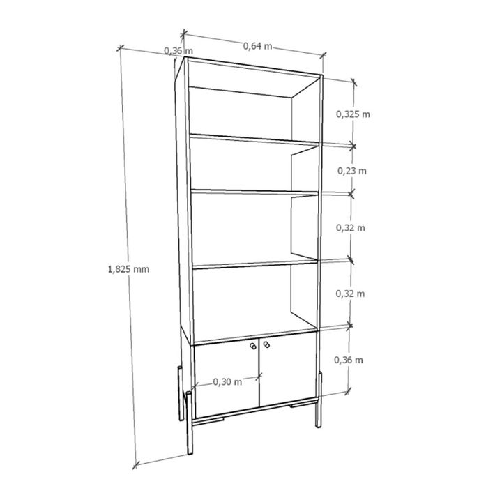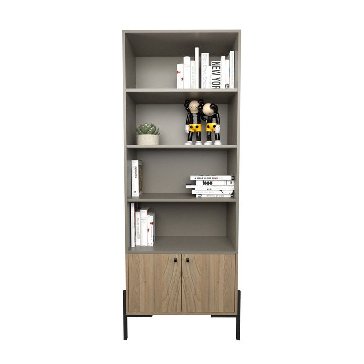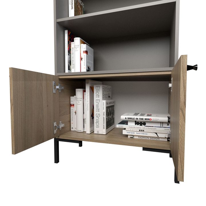 Biblioteca Metalwood Puertas Bajas Tables Cod: 4256 Gris y Olmo Finlandes
