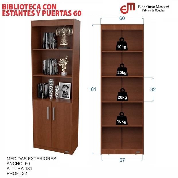 BIBLIOTECA MOSCONI BLANCA CON ESTANTES Y PUERTAS REPISA 81049 COLOR BLANCO ** EL PRODUCTO SE ENTREGARA EN AMBA A LAS 96HS HABILES DESPUES DE LA COMPRA. LUEGO DE COMPRAR TE LLEGARA UN MAIL CON LA INFO DE LA ENTREGA ** << EL MUEBLE SE ENTREGA DESARMADO EN CAJA CERRADA >> FICHA TECNICA: La Biblioteca B...