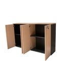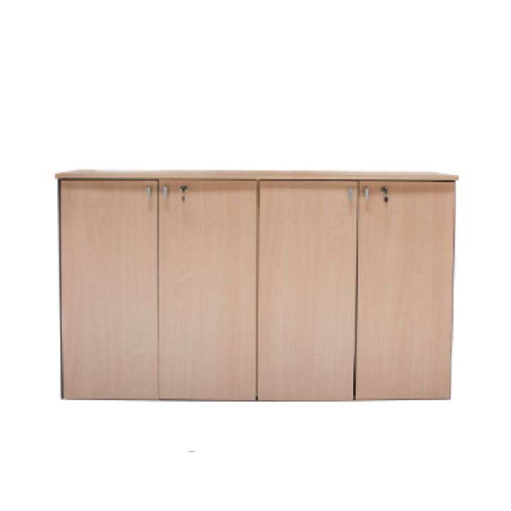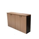 Biblioteca Baja de melamina. Cuatro puertas de Abrir. Dos estantes internos móviles. Dos cerraduras. Combinable con toda la Línea Profesional Platinum. Color Negro y Haya Medidas: Ancho: 1.48 Mts. Alto: 0.89 Mts. Profundidad: 0.36 Mts.