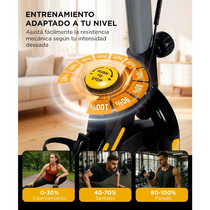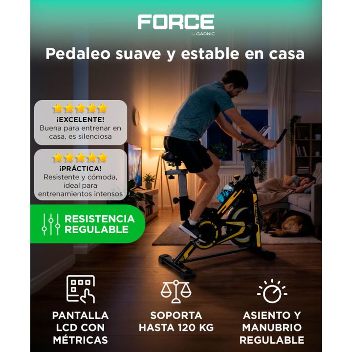 Pedaleo suave con volante de inercia de 6 kg: La bicicleta fija Force by Gadnic THG799 incorpora un volante de inercia de 6 kg que brinda una sensación de pedaleo más fluida y constante. Permite entrenamientos continuos, evitando movimientos trabados y mejorando la experiencia durante sesiones prolo...
