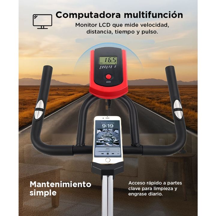 ¡REALIZA rutinas en cualquier momento! Las ventajas de adquirir una bicicleta de spinning es que podrás ejercitarte sin salir de casa, ahorrarás dinero en membresías de gimnasio y el equipo siempre estará disponible para usarlo. ¡AUMENTÁ tu resistencia! Nuestra bicicleta tiene un disco de 18 kilogra...