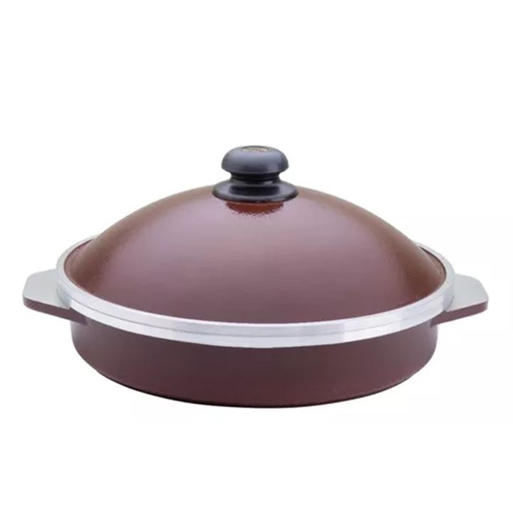 Apropiada para la cocción de todo tipo de carnes asadas. Adecuada para una familia tipo (4 porciones). Con doble cierre semi hermético. Con aleación de aluminio de alta calidad que garantiza una óptima transmisión de calor y evita la adherencia de los alimentos. Medidas sin embalaje: Alto 7 x Diámet...