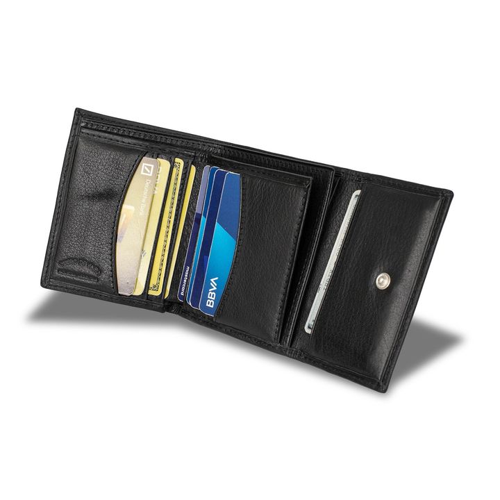 Cuando lo clásico se cruza con lo funcional, nace la Billetera Pacal. Un diseño simple pero con todo lo que necesitás: cuero de calidad, solapa con botón, visor, doble división para billetes y espacio para 9 tarjetas. Compacta, canchera y lista para acompañarte todos los días sin complicaciones. - M...