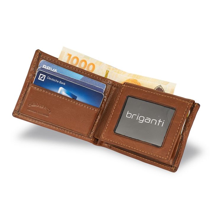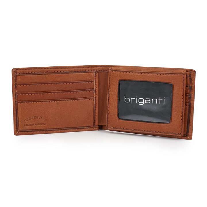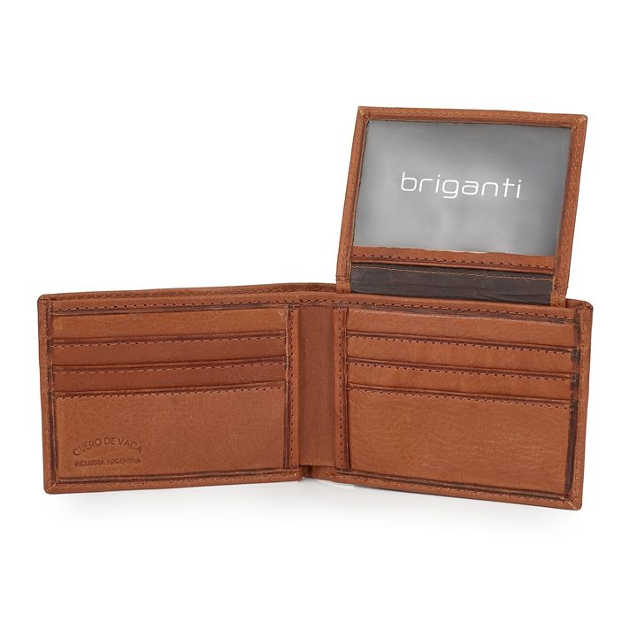 Billeteras Roque fabricadas en cuero chocolate de primera calidad. Cuenta con dos divisiones, capacidad para 6 tarjetas y dos visores. Creadas para llevar lo necesario a todos lados! - Marca: Briganti - Material Interno: Tela - Material Externo: Cuero - Articulo: HMBI61784 - Alto: 8 cm. - Ancho: 11 ...