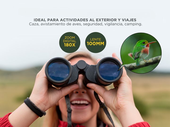 Explora el mundo con claridad y precisión con nuestros binoculares de 100 mm de lente y un impresionante zoom de 180x. Diseñados para aventuras al aire libre, son ideales para actividades como caza, vigilancia, camping, exploración de cuevas, pesca nocturna, navegación, y fotografía de vida silvestr...