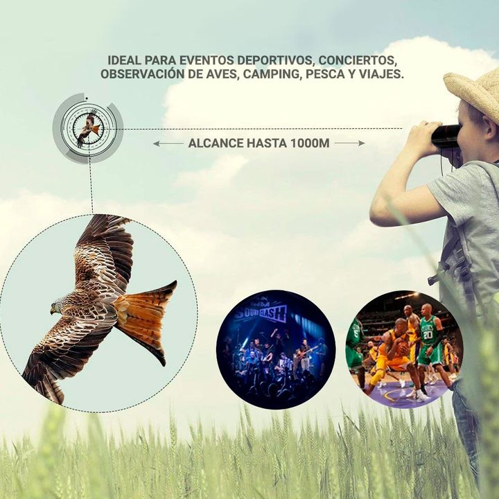 Explora el mundo con claridad y precisión con los binoculares con un alcance hasta 1000m. Diseñados para aventuras al aire libre, son ideales para actividades como caza, vigilancia, camping, exploración de cuevas, pesca nocturna, navegación, y fotografía de vida silvestre. Especificaciones Ampliació...
