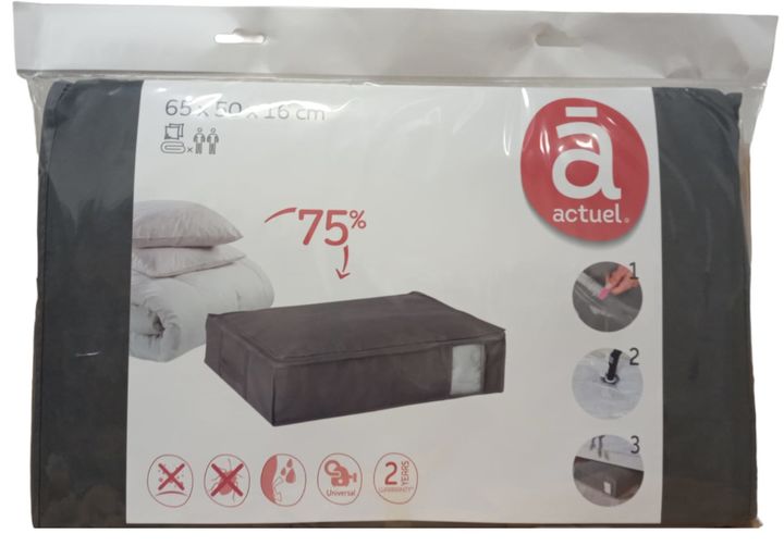 Organizador al vacio. Ideal para guardar colchas, frazadas, pullover o sweaters de invierno y optimizar el espacio. Se mantienen al vacio, sin aire para garantizar su limpieza. El espacio ganado es de hasta el 70%. Tenemos 2 medidas : de 125 lts y de 145 lts 65 de largo x 50 de ancho x 16 de alto. C...