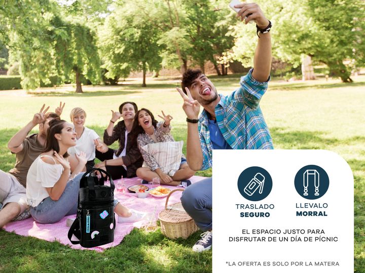 MOCHILA MATERA TRENDY -Capacidad para termo de hasta 1,3 litros. -Tira desmontable con extensión máxima de 105 cm. -Material de poliéster resistente y liviano. -Medidas: 37 cm alto x 20 cm ancho x 12 cm profundidad. -Manijas superiores reforzadas para llevar en la mano. -Correas acolchadas ajustable...