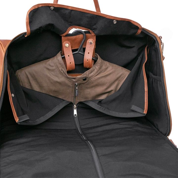 Un todo en uno con mucha presencia. El Bolso Volterra está confeccionado con exterior de cuero e interior de tela. Diseñado como portatraje, cuenta con correas regulables, bolsillos elásticos y un compartimento especial para calzado. Ideal para viajes, escapadas o días largos donde necesitás llevarl...