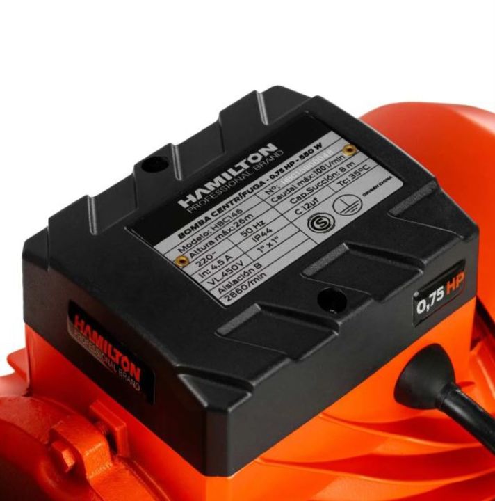 BOMBA CENTR+FUGA HBC146 220V 0,75HP HAMILTON Bomba Centrifuga 0.75hp Turbina Bronce 220V Hamilton HBC146 Características: - Tipo de Bomba: Centrífuga - Potencia: 0,75 HP - Potencia: 550 W - Flujo Máximo: 100 l/m - Elevación Máxima: 26 mts - Alimentación: 220V - Frecuencia: 50 Hz - Entrada y Salida: ...