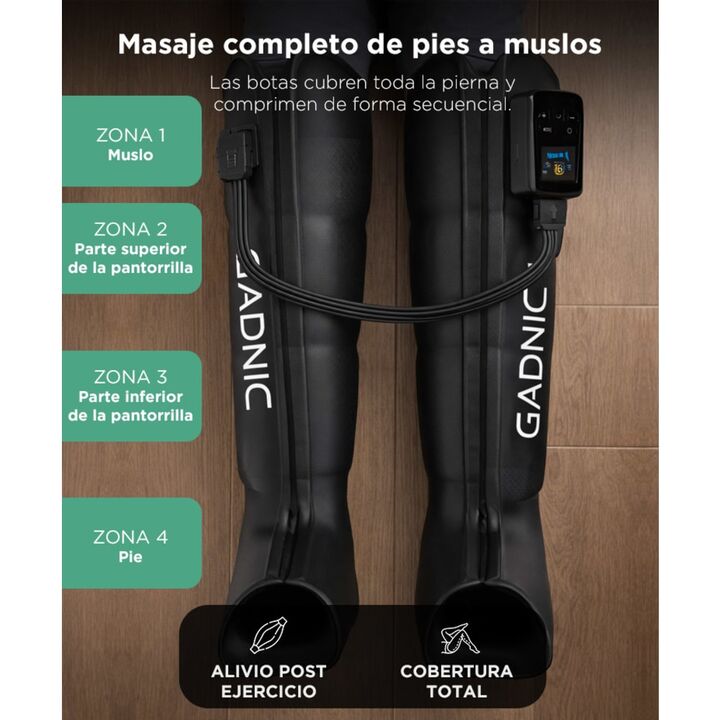 Presoterapia secuencial profesional: Compresión progresiva que estimula la circulación, reduce el dolor y promueve el drenaje linfático. Sentí el alivio desde el primer uso. Recuperación y alivio inmediato: Ideal para reducir la hinchazón, aliviar piernas cansadas y mejorar el descanso post entrenam...