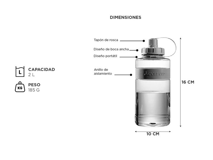 Descubrí la última innovación en hidratación con nuestra botella deportiva, diseñada para satisfacer tus necesidades activas con estilo y funcionalidad. Con una generosa capacidad de 2 litros, esta botella es ideal para mantenerte hidratado durante tus entrenamientos intensos, caminatas largas o cua...