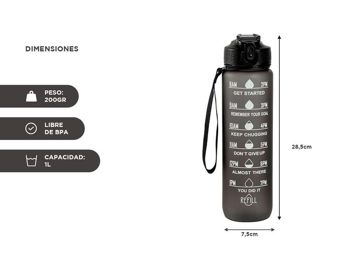 ¡Desata tu motivación y alcanza tus metas con nuestra Botella Deportiva Motivacional de 1L! Con su diseño motivacional inspirador impreso en su superficie, cada vez que tomes un sorbo te recordará tus objetivos y te dará un impulso adicional para superar tus límites. Mantente hidratado mientras te l...