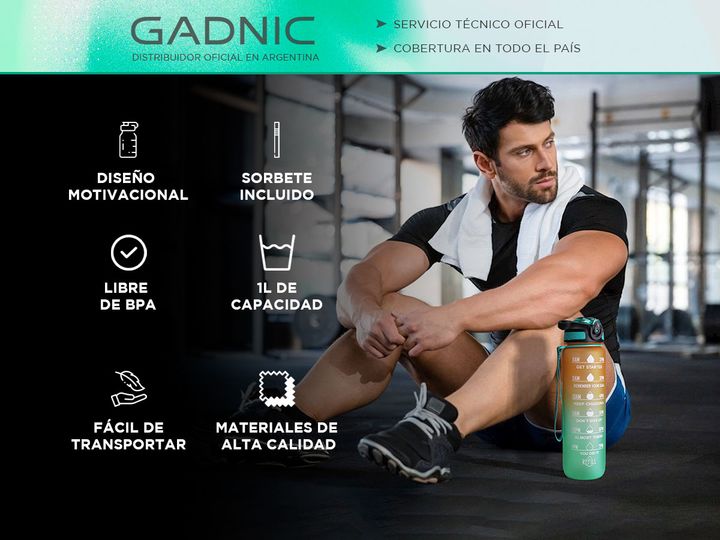 Botella Deportiva Motivacional Verde Gadnic 1L con Pico Sorbete