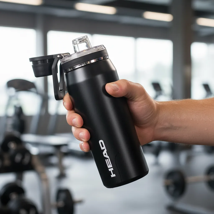 BOTELLA AGUA TERMICA ACERO INOXIDABLE 600 ML HEAD -Botella térmica, apta para bebidas frías o calientes. -Capacidad: 600 ml. -Interior de Acero doble capa -Medida : 21cm alto x 7.5cm ancho x 9.5 diámetro -Apto uso una sola mano. -Producto libre de BPA. -A prueba de fugas. -Incluye packaging -Product...