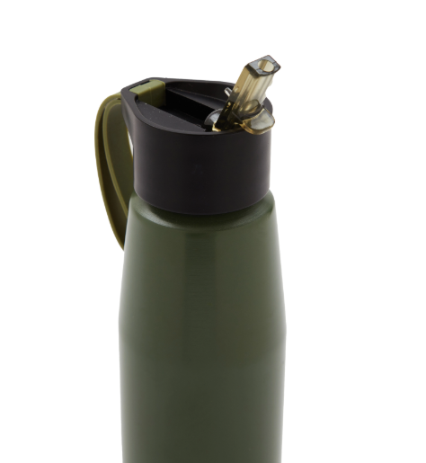 Botella de aluminio con tapa de PP negra a rosca con pico de PS y sorbete PE. Cuenta con una correa de silicona a tono con el color elegido para facilitar el agarre. Capacidad de 700 ml. Ideal para tus actividades deportivas y al aire libre. Con impacto positivo en el medio ambiente, esta botella re...