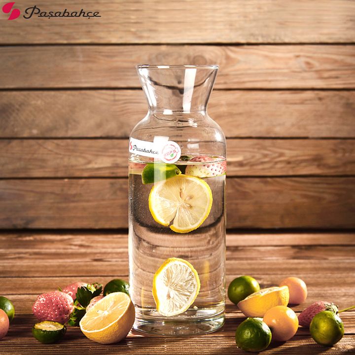 Jarra en vidrio turco Pasabahce Clásica para todos los usos : agua, limonada, leche, etc Capacidad : 1 Litro Medidas : Altura total 25 cms / Diametro base : 9 cms / Diametro de boca : 7,5 cms Super transparente Vidrio digno de ser apreciado .... Origen TURQUIA