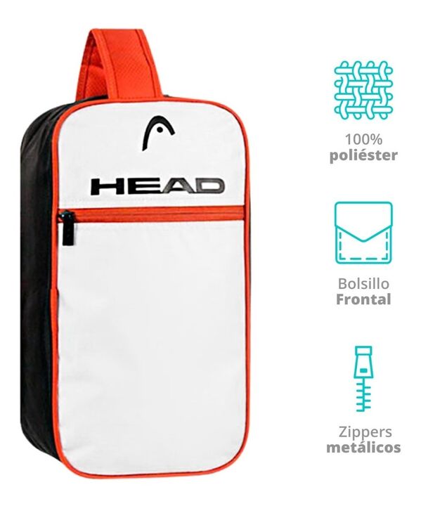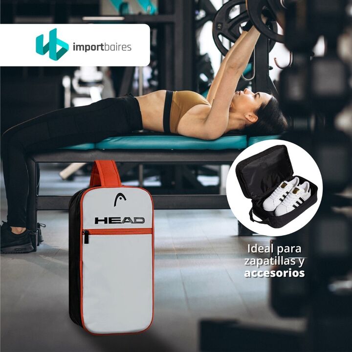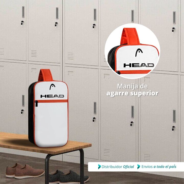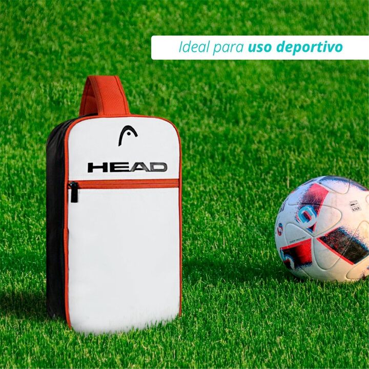BOLSO BOTINERO DEPORTIVO HEAD DE MANO -Bolso Botinero Unisex -Marca : HEAD -Bolsillo Frontal -Para botines y accesorios -Bolsillo principales con doble cierre Zipper -Nombre de la marca al frente -Manija de agarre superior -Material 100% Poliéster. -Ideal para uso deportivo -Medida : 36cm Alto x 19c...