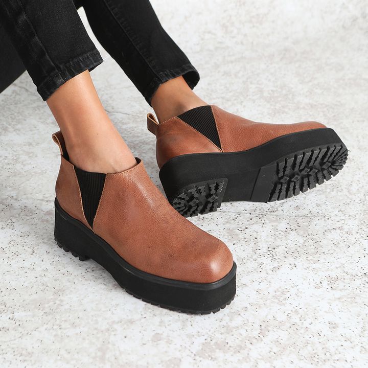 Plataforma doble, elástico lateral y pullers son los elementos imprescindibles para tu día a día. Las nuevas botinetas Dunoir suman altura sin perder comodidad. ¡No te pierdas la oportunidad de tener este comodín en tu guardarropa! - Base: Goma - Material Interno: Cuero - Material Externo: Cuero - A...