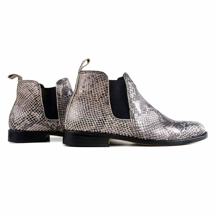 Si buscás unas botinetas casuales que se adapten a la perfección a tus actividades más cotidianas, las botinetas Monroe te encantarán. Su diseño, inspirado en la silueta Chelsea, cuenta con elásticos laterales y cuero de pitón. ¡Animate! - Base: Suela - Material Interno: Cuero - Marial Externo: Cuer...