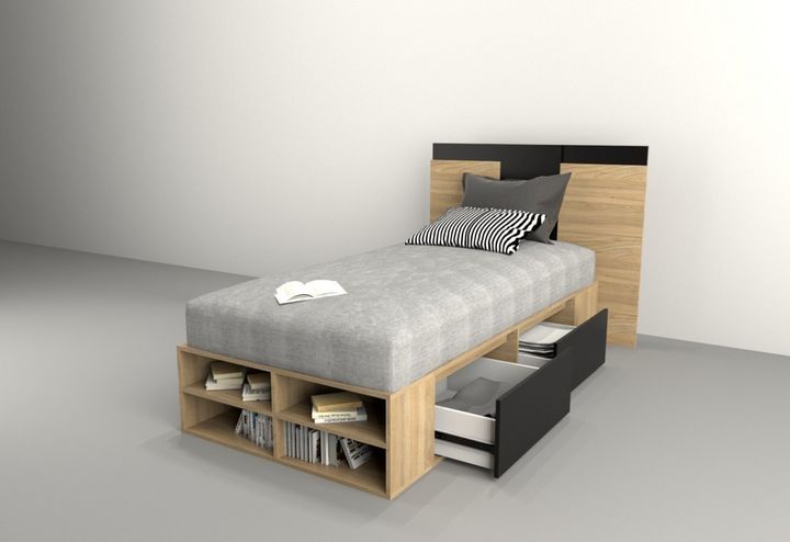 Box para colchón de hasta 0,90m. Linea MINIMAL Juvenil contiene 2 cajones de cada lateral para aprovechar el espacio de guardado y repisas en piecera.<|p>