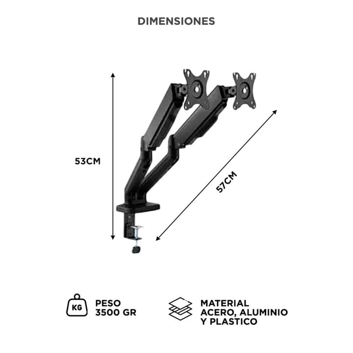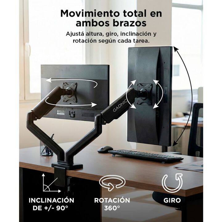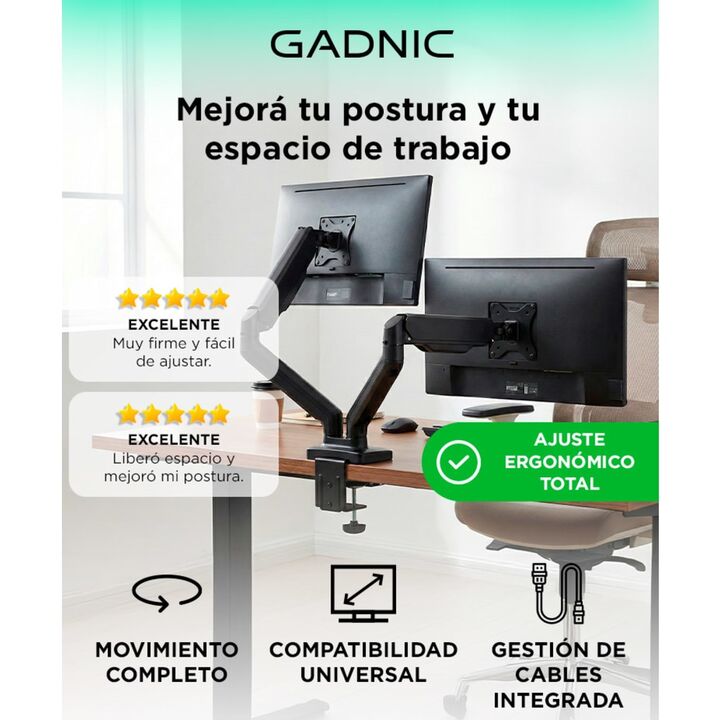 Gadnic presenta el nuevo Soporte Dual de escritorio: El Soporte para Monitor es la solución ideal para optimizar el espacio de tu escritorio y mejorar la ergonomía de tu área de trabajo. Este soporte, completamente ajustable, permite una configuración personalizada con movimiento completo e inclinac...
