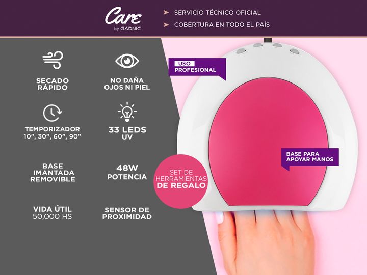 Conocé la nueva línea de cabinas UV LED para uñas gelificadas GADNIC. LEDSUN es una increíble cabina UV LED para uñas gelificadas/esculpidas de uso profesional. La luz funciona tanto para esmaltes de gel, permanentes y semi-permanentes. ¡Es muy fácil de usar! Sólo introducí tu mano y automáticamente...