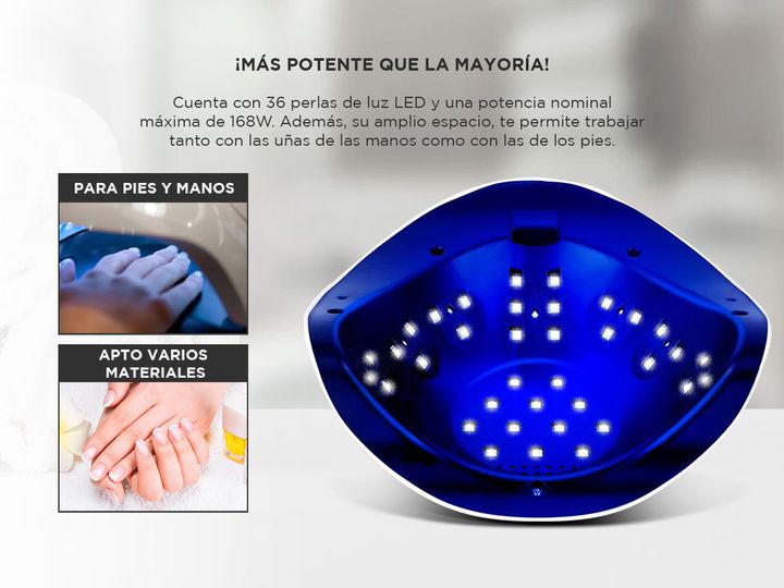 ¡Nueva Cabina UV Gadnic Secadora de Uñas de Gel! Con 36 perlas de luz y una potencia nominal máxima de 168 W, nuestra lámpara de uñas de gel LED UV es más potente que la mayoría. La pantalla digital LED incorporada muestra el tiempo de secado de las uñas. Y debido a la protección contra la temperatu...