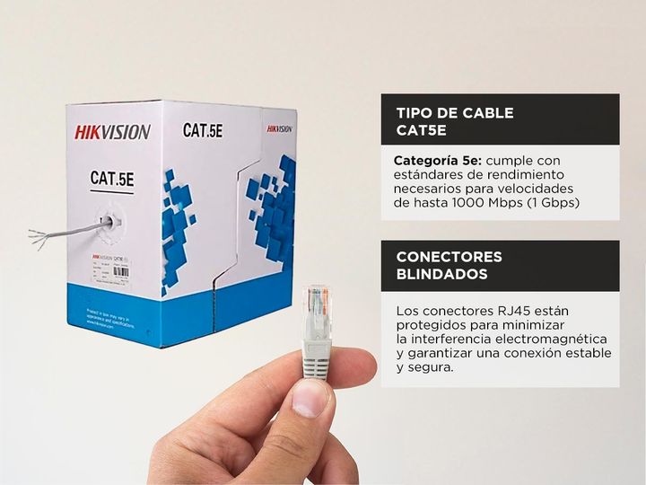 Hikvision presenta el nuevo Rollo de Cable de Red Cat 5e: Construcción de Calidad: Fabricado con cobre sólido de alta calidad, este cable garantiza una conexión estable y duradera. Transmisión de Datos Eficiente: Con una velocidad de transferencia de datos de hasta 1000 Mbps, asegura una transmisión...
