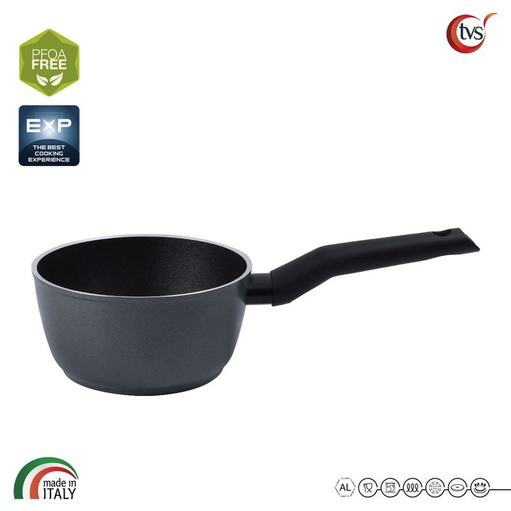 TVS CACEROLA C/MANGO 16 TVS ORIGINE RESTYLING 1,4 LITROS SKU: 8000807068694 Descripción TVS, fabricante italiano líder en utensilios de cocina antiadherentes. Producto fabricado en Italia Cacerola apta para todo tipo de fuegos, incluida inducción. Cazo antiadherente con superficie extradura, extrabr...