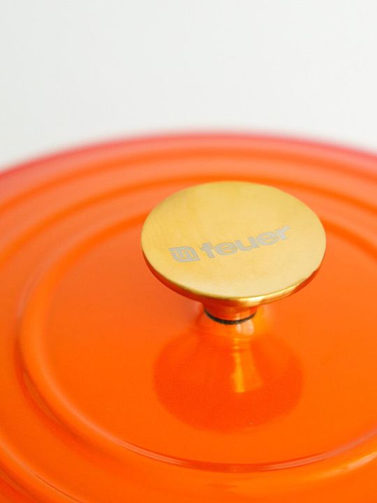 La cacerola Feuer de hierro enlozado de 25 cm combina resistencia, estilo y practicidad. Su material distribuye el calor de manera uniforme, logrando cocciones perfectas y realzando el sabor de tus preparaciones. El color naranja le da un toque moderno y llamativo a tu cocina. Ideal para guisos, sal...