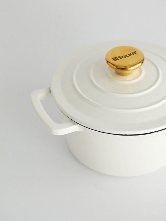 La cacerola Feuer de hierro enlozado con mango y tapa combina calidad, diseño y practicidad. Su material distribuye el calor de manera uniforme, logrando cocciones perfectas y realzando el sabor de tus preparaciones. El color blanco le aporta un toque moderno y elegante a tu cocina. Ideal para guiso...