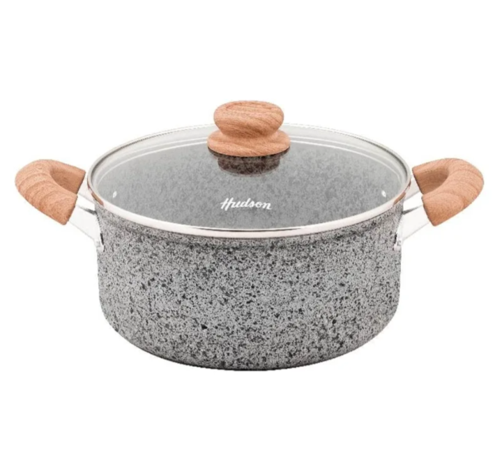 Cacerola Hudson Granito Stone Aluminio Forjado 24cm con tapa de cristal.