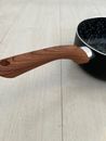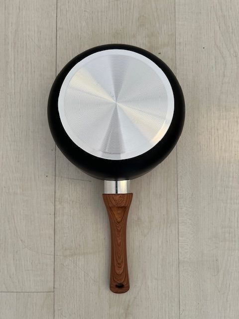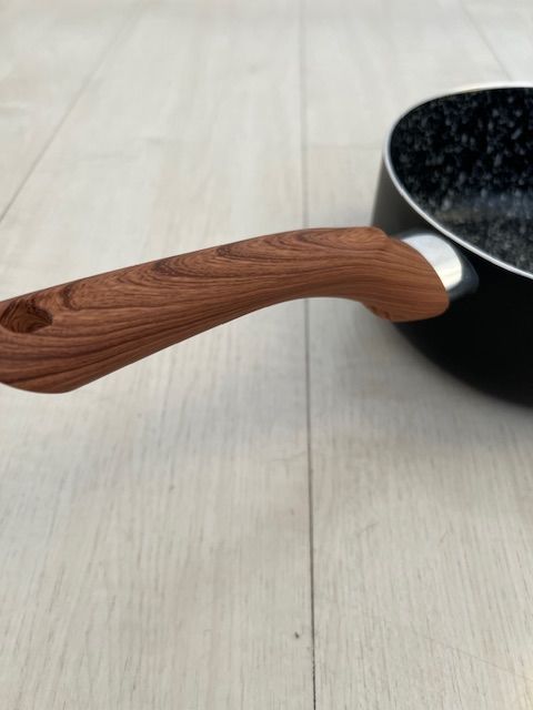 Cacerola Olla de 18 cms recubierta internamente con ceramico antiadherente Material : Aluminio con antiadherente en su interior. El mango es de baquelita simil madera , siliconada y la tapa de vidrio templada con orificio salida de vapor. El interior tiene antiadherente ceramico ( pintitas blancas) ...