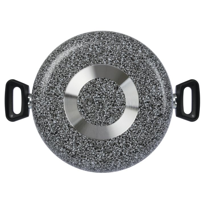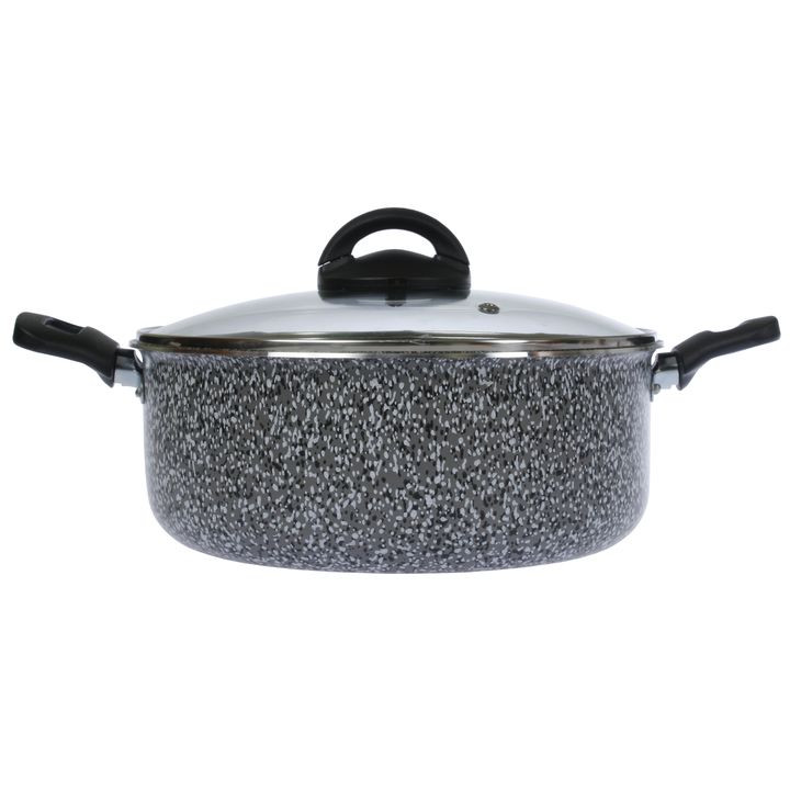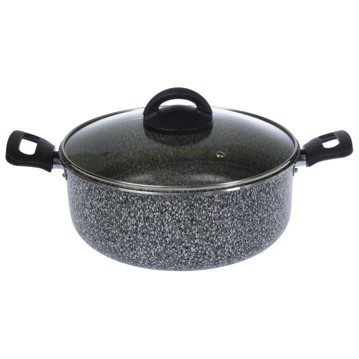 Cacerola Olla de 24 cms de diametro con tapa de vidrio Templada y orificio salida de vapor Capacidad : 4,5 lts Diametro : 24 cms / Altura olla base : 9,5 cm Interior con Antiadherente , espesor 1,8 mm Apta para cocina a gas, electrica y vitroceramica ( no es apta para induccion) Línea: Pedra Gris Ma...