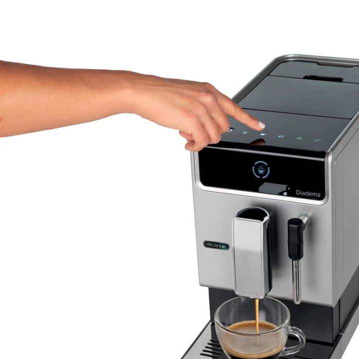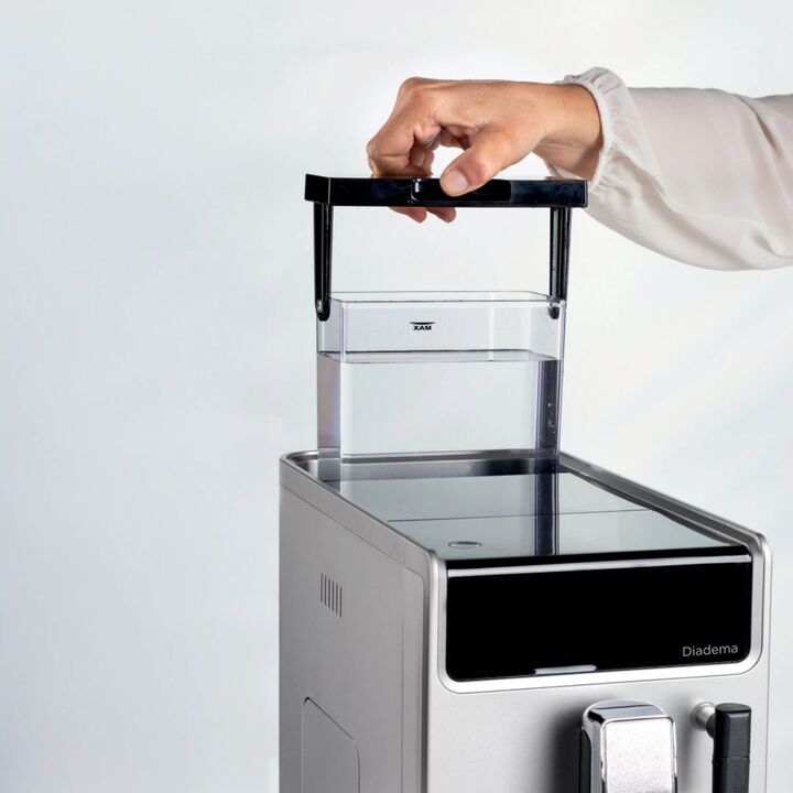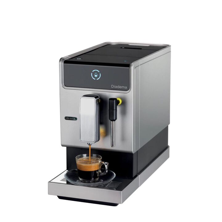 Panel táctil LED, 3 bebidas con un clic (Americano, Espresso, Agua caliente), dispositivo Cappuccino, Café personalizable. Presión: 19 bar. Diadema es la cafetera automática para obtener el café perfecto, como en el bar. Colores intensos y oscuros, formas lineales y profundidad reducida. Diadema Pro...
