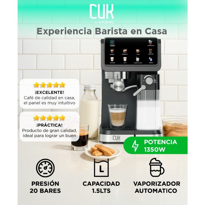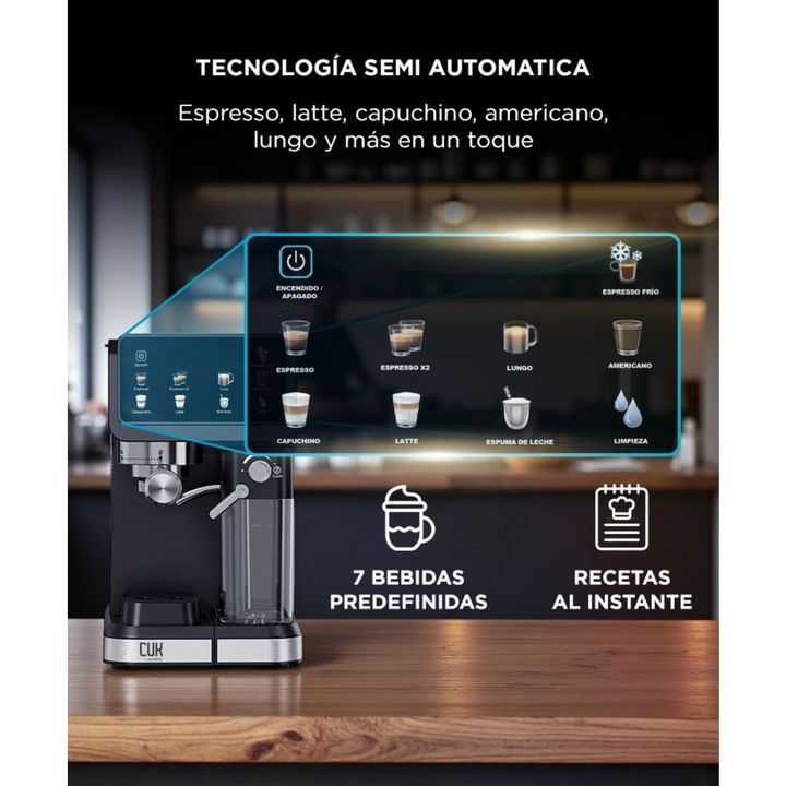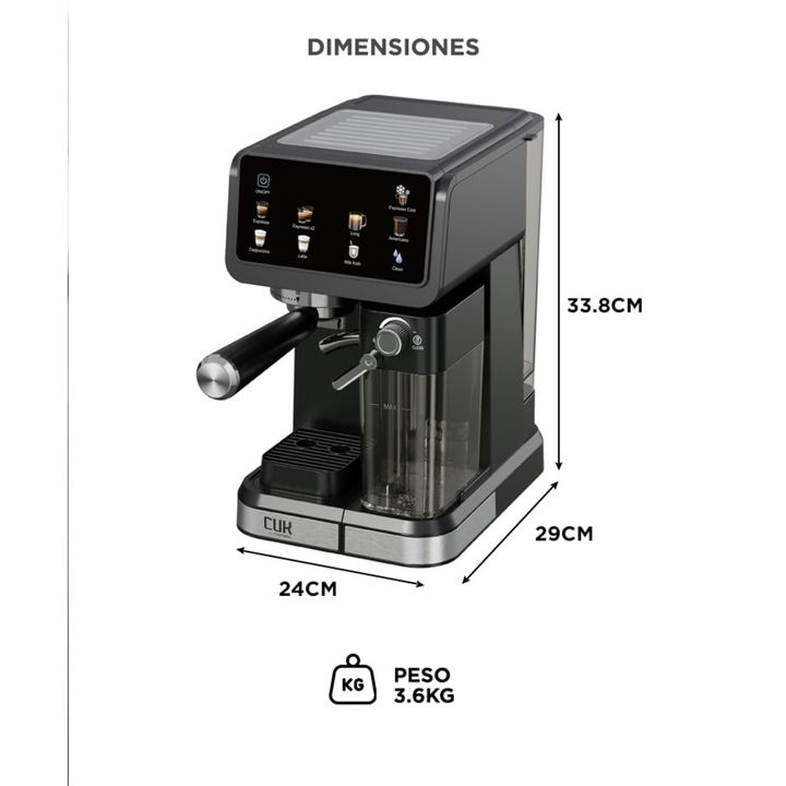 Cafés variados con un toque: Disfrutá de una amplia selección de bebidas: espresso simple o doble, cappuccino, latte, lungo, americano, espresso frío y espuma de leche. Gracias a su panel digital, podés elegir cada opción con solo presionar un botón, sin necesidad de conocimientos técnicos. Ideal pa...