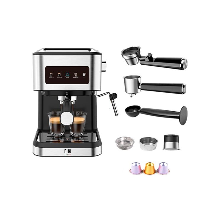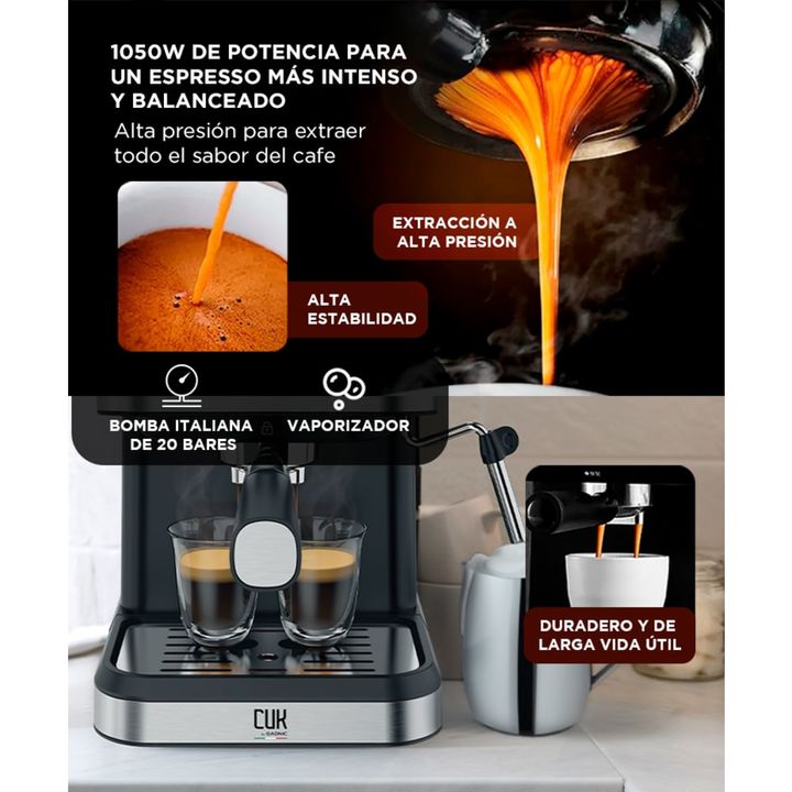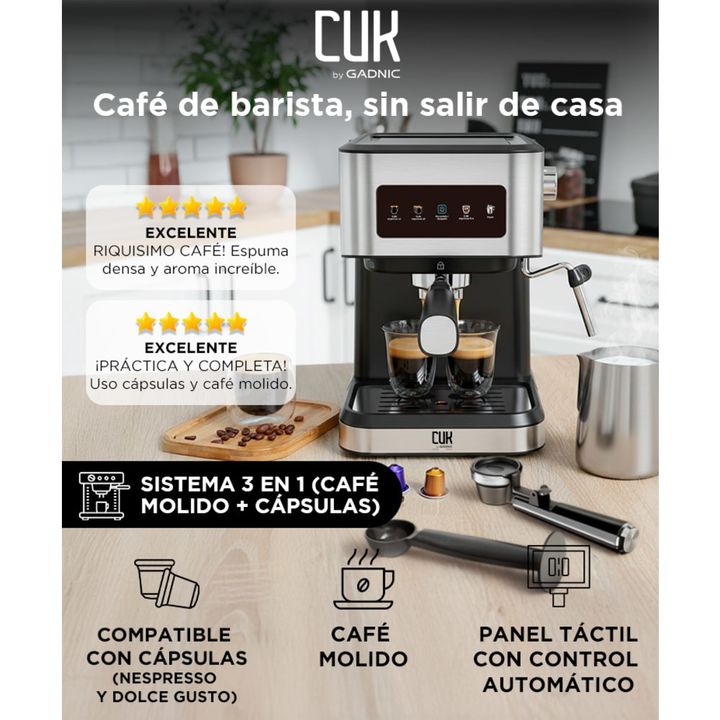 Café de calidad en casa La Cafetera Gadnic 20 Bar combina potencia, diseño y versatilidad. Su bomba de presión de 20 bares garantiza un espresso intenso, cremoso y aromático, ideal para los amantes del buen café. Versatilidad total: cápsulas o café molido Compatible con cápsulas Nespresso, Dolce Gus...