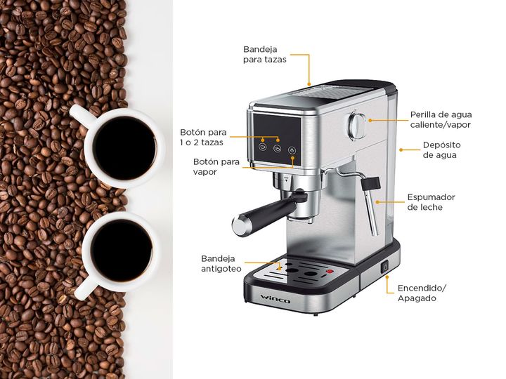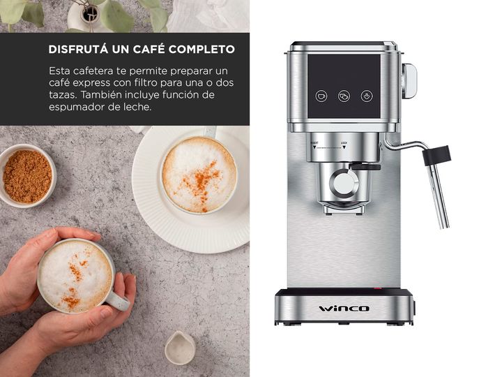 ¡Disfruta del café como nunca antes con la Cafetera Express Winco W1923! Con su potente bomba italiana de 19 bares de presión, esta cafetera transforma tu café diario en una verdadera experiencia gourmet, extrayendo todo el sabor y aroma de cada taza. Además, su moderno panel touch hace que su uso s...