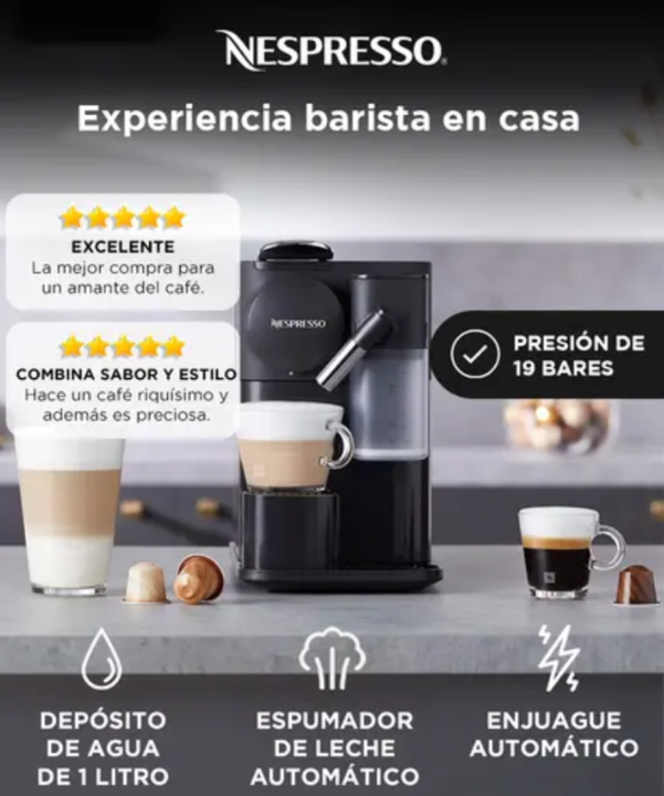 Cafetera Nespresso Lattissima One – Café barista en tu hogar: La Nespresso Lattissima One combina tecnología de 19 bar de presión con un espumador de leche automático, logrando resultados consistentes y cremosos en cada taza. Su sistema intuitivo te permite preparar espresso, latte o cappuccino con ...