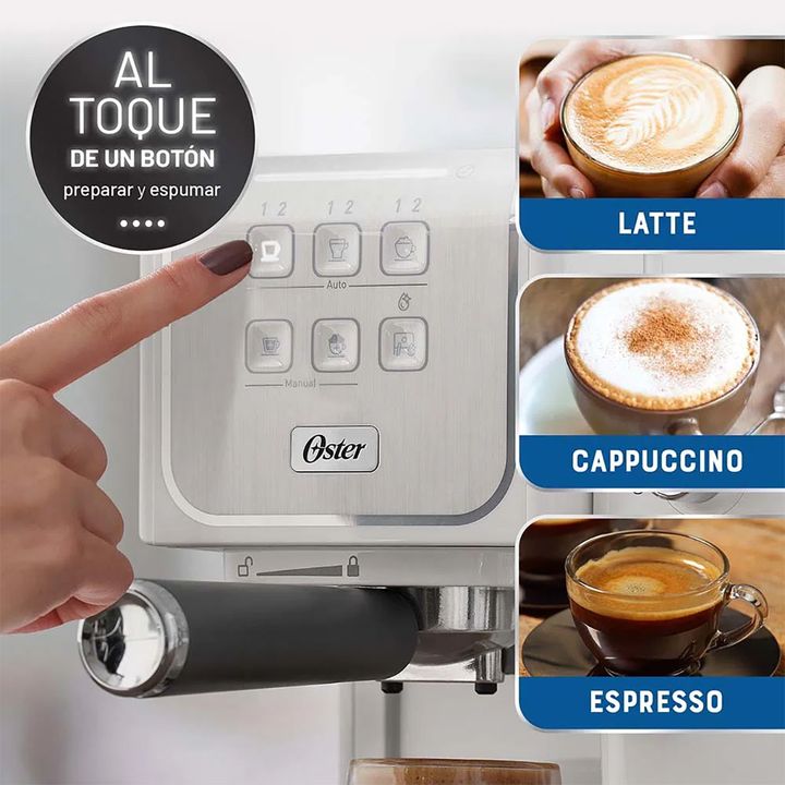 ES COMO TENER UN BARISTA EN CASA Si buscas una experiencia superior cuando tomas café en casa, nuestra Cafetera Oster® PrimaLatte™ Touch es para vos. Con ella podés preparar fácilmente bebidas especializadas, espresso, cappuccino o latte. Disfruta de un café perfecto, con la calidad y confianza de t...
