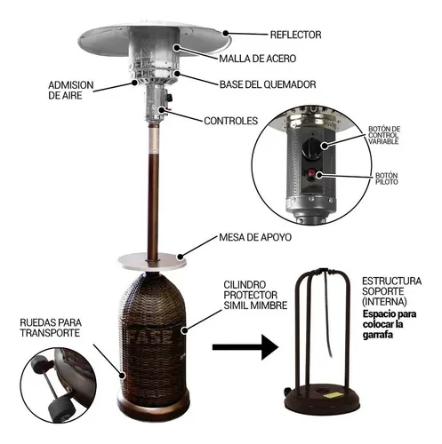 CALENTADOR DE PATIO TIPO HONGO LUSQTOFF JK-1009 RATTAN Mantener la temperatura de tus espacios durante el invierno ya no es un problema. El calefactor eléctrico Lüsqtoff JK-1009 te permite disfrutar de tu hogar durante todo el año, de una manera más práctica y sencilla. CARACTERISTICAS - Marca: Lusq...