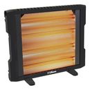 Patas para ser utilizado sobre el piso o soporte para fácil montaje en pared. Cuatros tubos de cuarzo. 2 niveles de potencia. Pantalla interior metálica. Manija para traslado. Enrollacable. Potencia máxima de 2200W. Cuenta con protección contra subidas de tensión y sobrecalentamiento. Fabricado en p...