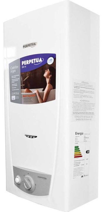 CALEFON 1L017 DR-14 CE GN PERPETUA -14 litro por minuto -Agua caliente ilimitada -Eficiencia energetica D -Encendido Piezoelectrico -Quemador de alto rendimiento -Tiraje natural -Sensor de corte por exceso de temperatura -Sensor de corte por exceso de gases decombustion -Valvula de seguridad -Gas Na...