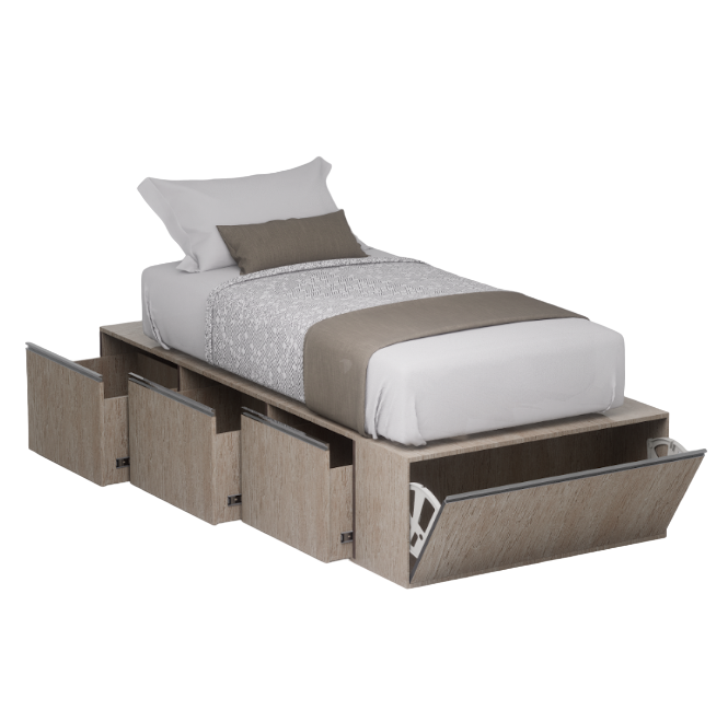 Descripcion La Cama Cubo Pro es ideal para dormitorios que necesitan aprovechar el espacio al máximo. Sus cajones tienen un terminado de calidad inigualable que permiten mejorar la experiencia de uso. El agarre es con perfilerías de aluminio y sus correderas son metálicas. Es una combinación perfect...