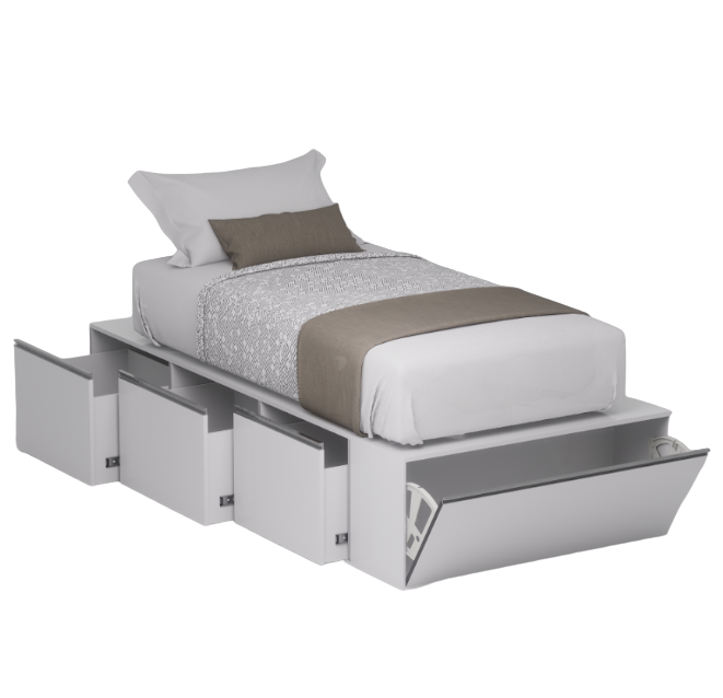 Descripcion La Cama Cubo Pro es ideal para dormitorios que necesitan aprovechar el espacio al máximo. Sus cajones tienen un terminado de calidad inigualable que permiten mejorar la experiencia de uso. El agarre es con perfilerías de aluminio y sus correderas son metálicas. Es una combinación perfect...