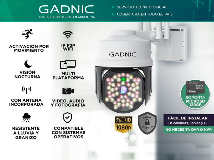 ¡Gadnic presenta su nueva linea de Cámara para exterior! Esta cámara WiFi para el hogar con resolución de 1920 × 1080 p por lo cual vas a poder ver todo en hermoso color y súper claridad. Con su sistema de grabación podrás guardar lo ocurrido en el día en vídeo y audio. Además con sus tres versiones...