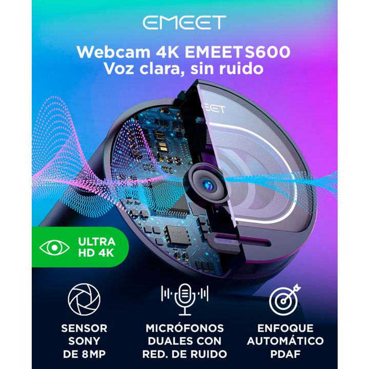 Imagen nítida en calidad 4K: Transmití o grabá en Ultra HD 3840×2160 gracias a su sensor Sony de 8MP. Ideal para videollamadas profesionales, streaming y contenido de alta definición. Fluidez máxima en 1080p 60fps: Disfrutá videos sin cortes ni saltos incluso en movimiento. Perfecto para clases onli...