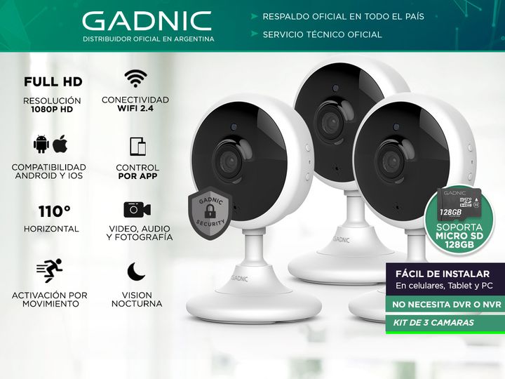 El set de 3 cámaras de seguridad Gadnic 702 es la opción más elegida del mercado gracias a su gran versatilidad. Ideal para vigilar tu hogar, bebé, mascota, padres, ancianos, oficina, empleados y más, te brinda tranquilidad sin importar dónde te encuentres. Podrás controlar, hablar, escuchar y vigil...